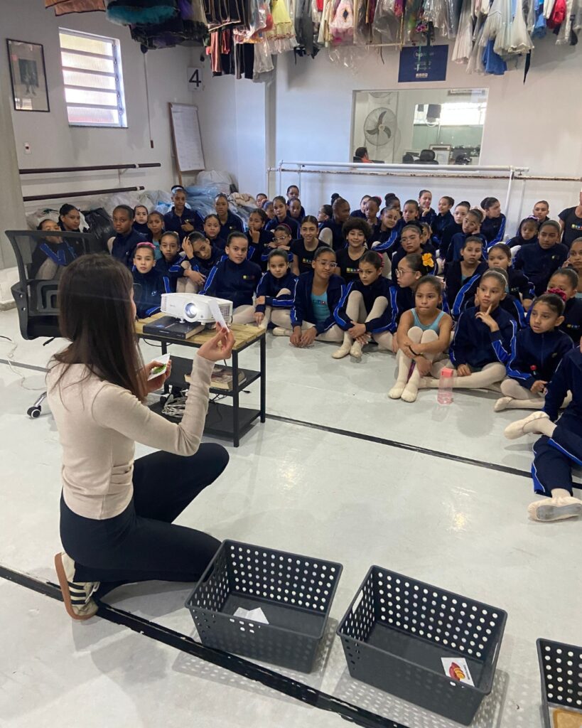 A tarde foi marcada por muito aprendizado, troca de conhecimentos e dinâmicas em grupo. A equipe da LANES conduziu uma palestra cheia de informações importantes sobre alimentação saudável, especialmente voltada para quem pratica atividades físicas como a dança — mostrando como uma boa nutrição é essencial para o desenvolvimento, o desempenho e a saúde dos nossos bailarinos.